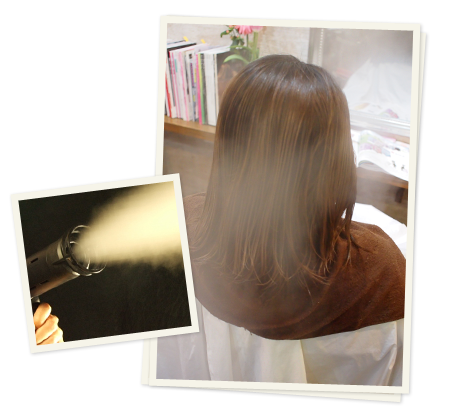 髪の健康状態でヘアカラーはカラー後の髪のツヤ感、色持ちが決定します。そこでCoenではお客様の髪の状態に合わせて、髪と同じ成分のPPTやCMCといった前処理剤を使用し、 さらにナノミストをスチームすることで、髪をケアし健康な状態にしてからカラー施術に入ります。